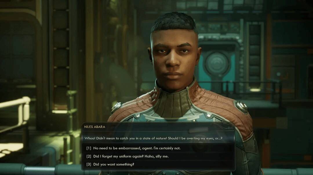 《天外世界2》的细节满满,当玩家角色一丝不挂裸奔时,有些NPC会吐槽道:“我是不是该移开视线?”