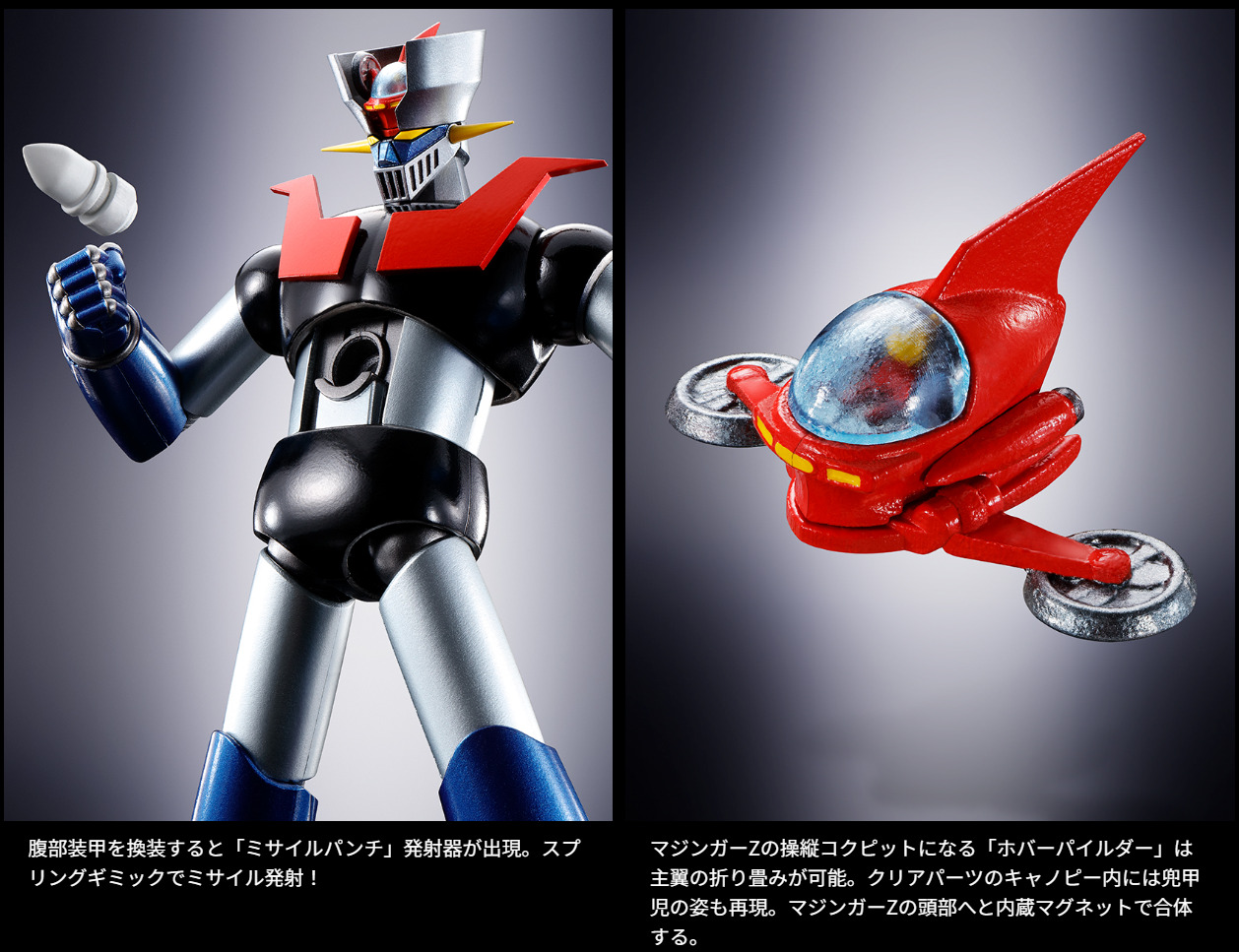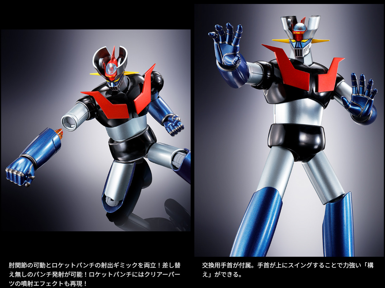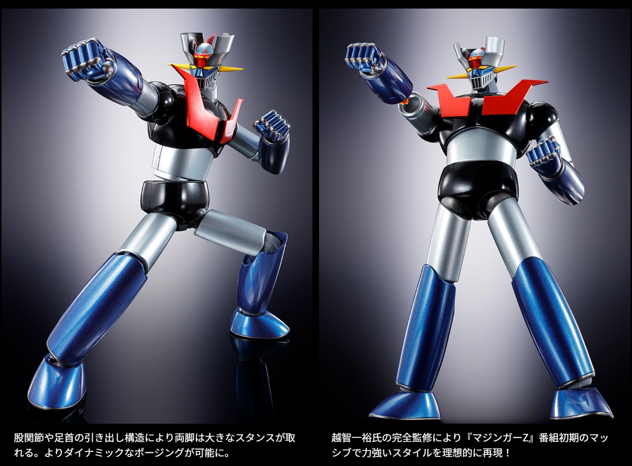 『マジンガーZ』TV放送50周年となる2022年12月に超合金魂マジンガーZを完全新規造形でリリース。肘の可動と射出ギミックを両立し、パーツ差し替え無しでロケットパンチを発射。股関節と大腿部の新規構造でヒザ立ちなど自然なポージングが可能に。腹部からのミサイル発射ギミックとジェットスクランダーも装備。