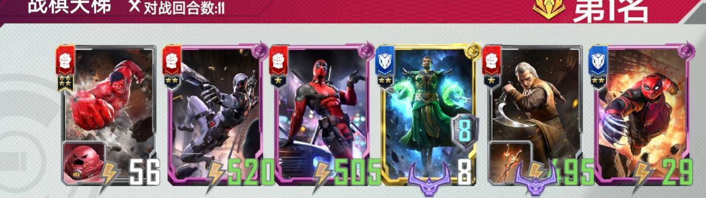 ·4费:死侍龙超绝贯穿,黑维后备队;绿死侍可换(个人尝试过带女死侍,配合美队链接,但实测效果不好,不仅拖节奏,还会卡牌)
