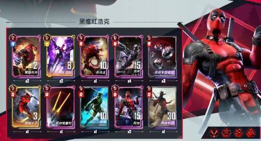 我写了两套卡组,第一套是钢铁侠、死侍、奇博构筑;第二套是希娜、死侍、奇博