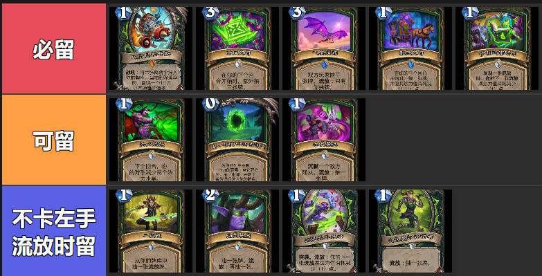 打萨满,猎人留吞噬魔法,打德鲁伊留法力燃烧,有摸牌可留第一道阿古斯传送门