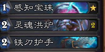 其次便是相当通用的宝珠所引出的抽刀体系,得益于战士优质抽刀法术——灵魂烘炉,我力排众议组建出了这套双烘炉抽刀体系。一方面,尽早挂上宝珠可以极大提升后续操作空间,其次双烘炉还可以在比如第一张烘炉抽双刀之后,被芬利把护手洗进牌库底,此时便可用第二张烘炉把护手抽上来。