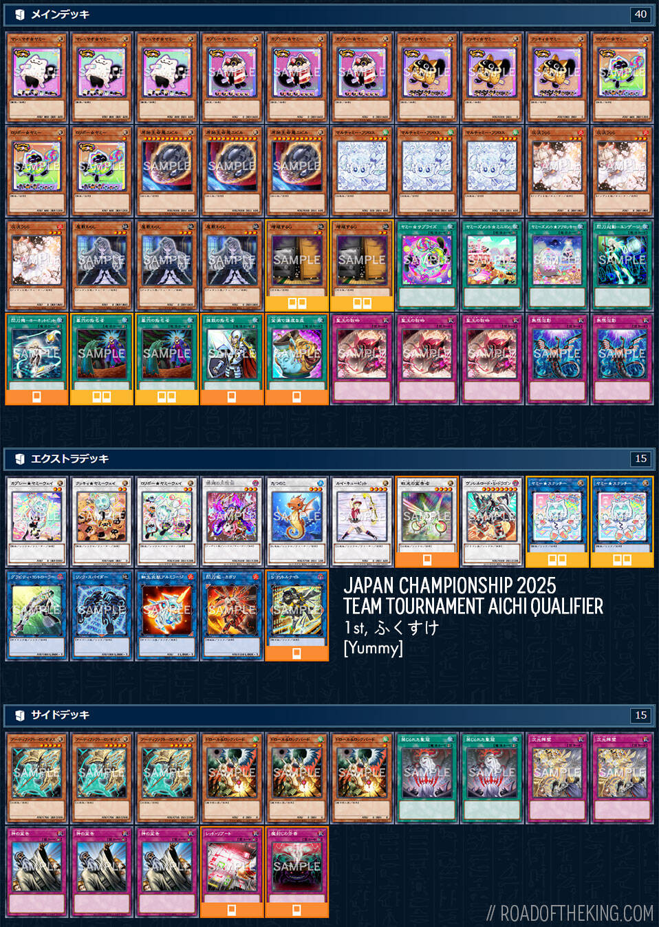 ふくすけ在有128队(384人)参赛的“Yu-Gi-Oh! Japan Championship 2025 Team Tournament Aichi Qualifier”中以6-0的成绩出轮,并荣获冠军。