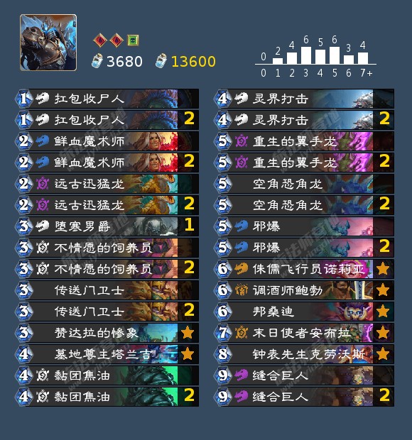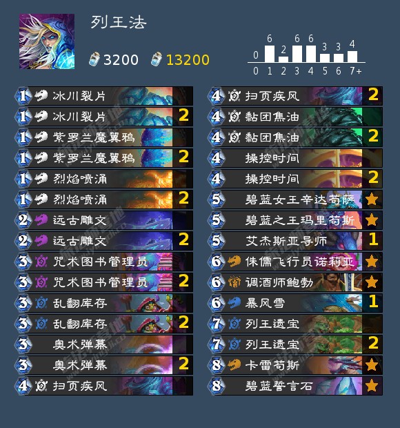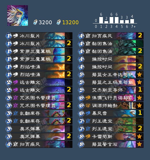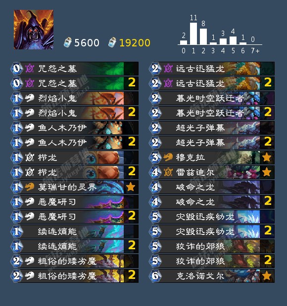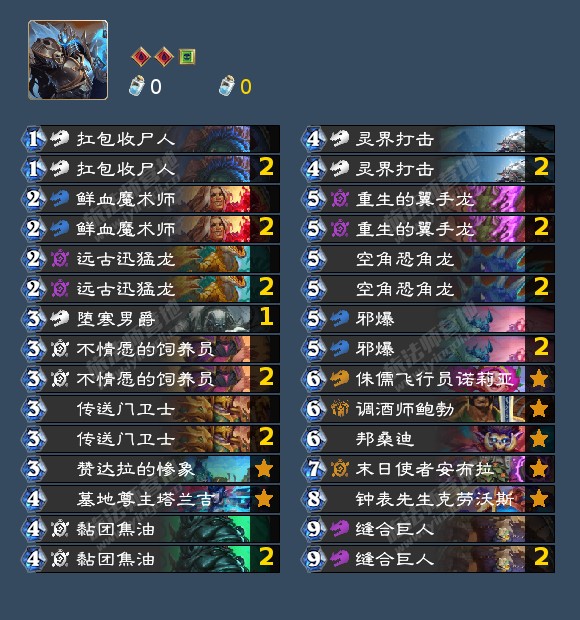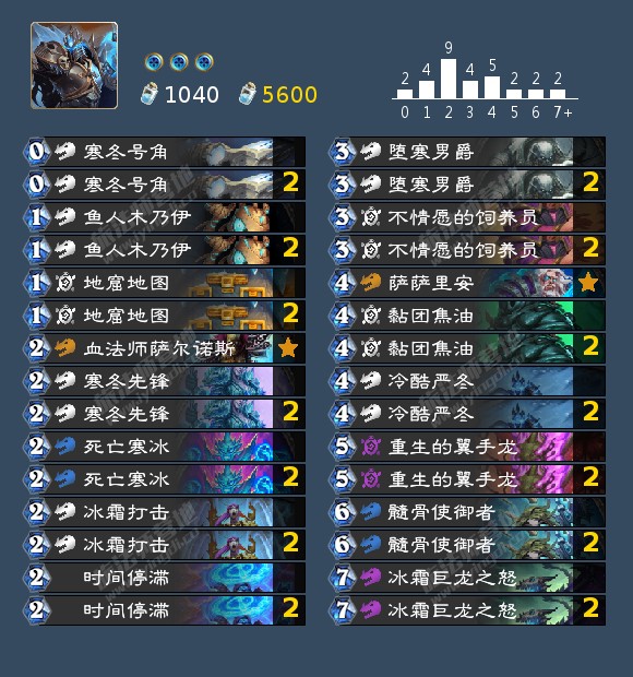 作者注:没有新卡时间停滞的话可以根据自己的卡池和环境微调卡组,可以把空出的卡位跟一张死亡寒冰换成一张支线任务和远古迅猛龙来打节奏,不想合远古迅猛龙也可以拿冰片等其他卡片替代,换上444沉默更好打蛋术,防战,带吸血的麦迪文牧。