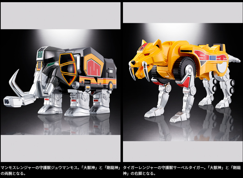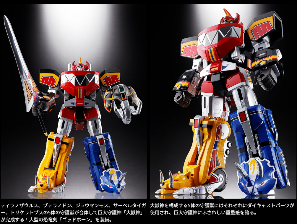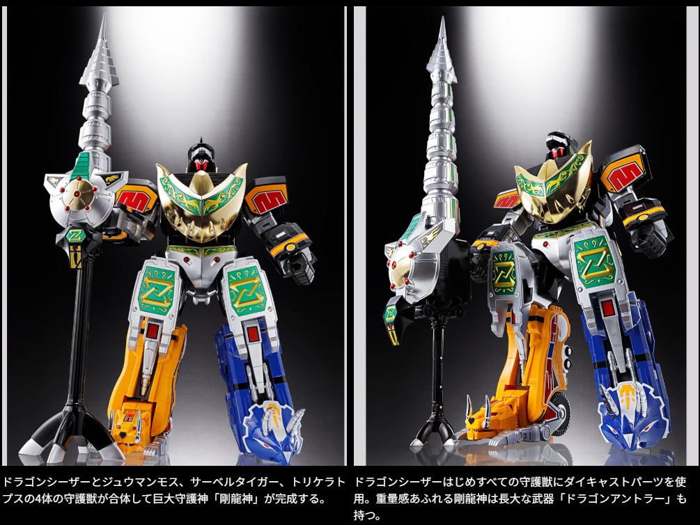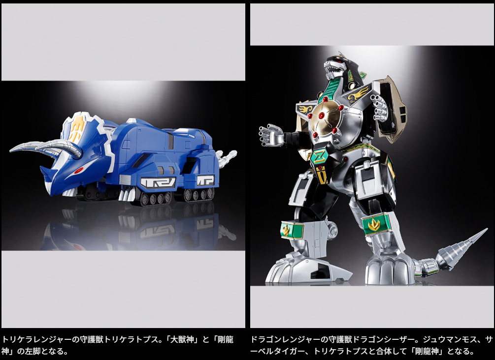 スーパー戦隊シリーズでも屈指の人気を誇る『恐竜戦隊ジュウレンジャー』より、大獣神に合体する恐竜型の5体の守護獣と、6体目の守護獣ドラゴンシーザーが6体ワンセットとなって登場。様々な変形・合体バリエーションが楽しめ、6体すべてを合体させると「獣帝大獣神」が堂々完成!