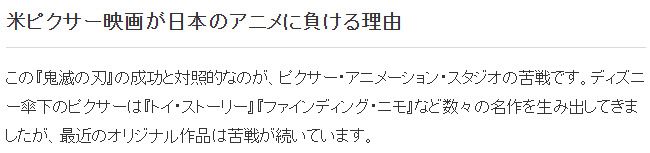 近日《鬼灭之刃》新动画电影在北美获得历史新票房纪录,引发热议,反观曾经的好莱坞动画界王者皮克斯近期作品接连遭遇败绩,一起来看看业界专家的分析。