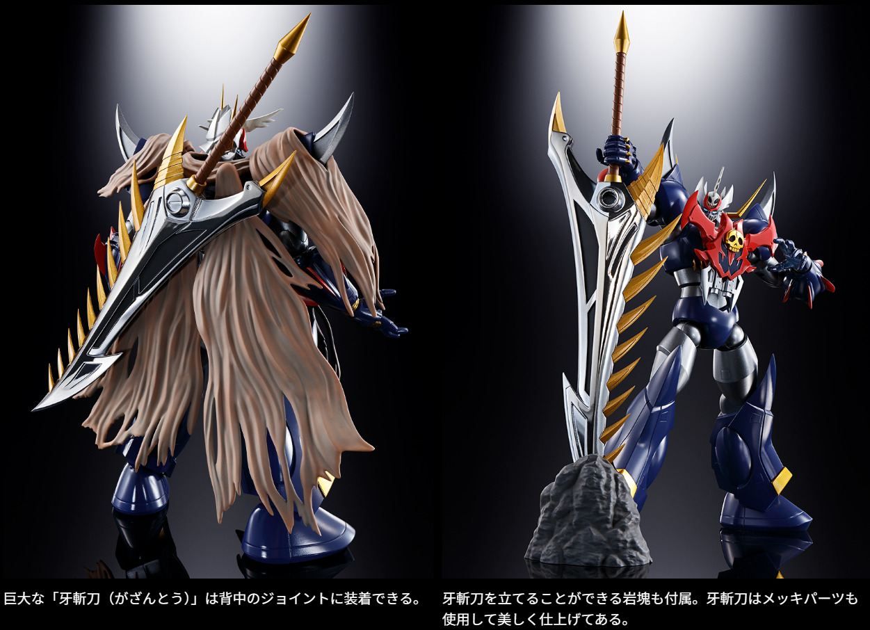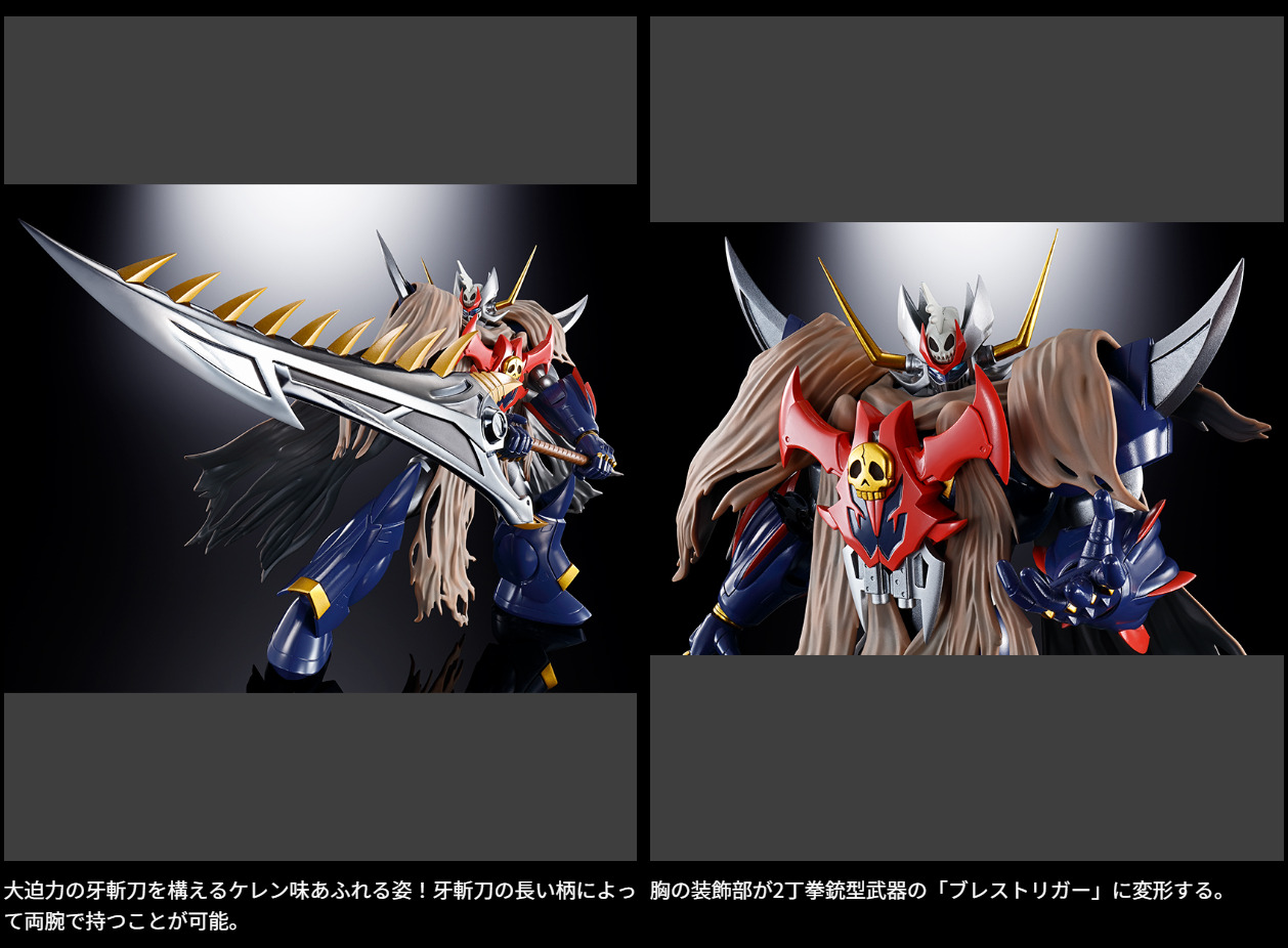 巨大な「牙斬刀」!2丁拳銃「ブレストリガー」!全身を覆うダメージマント!荒々しい風貌を余すことなく再現したマジンカイザーSKL見参!