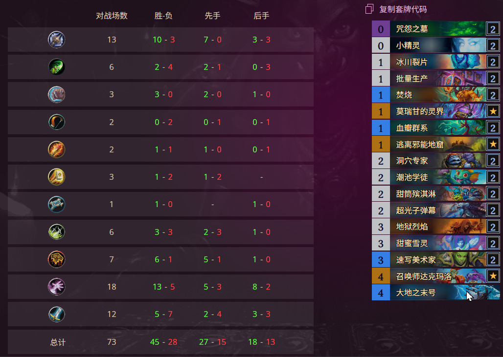 留咒怨之墓灵界血瓣群系美术家 沉默和一个地标换了2费打6 能解撕裂术、瞎、瘸、萨场面还能打斩杀 印象里有两把没做完任务就扔打6打死了 战士不好打可以考虑地标换沉默沉默乌龟