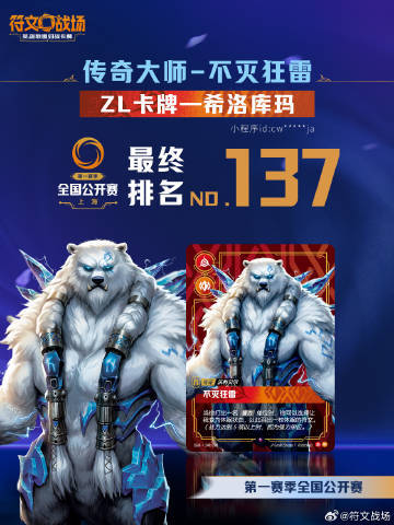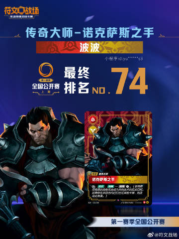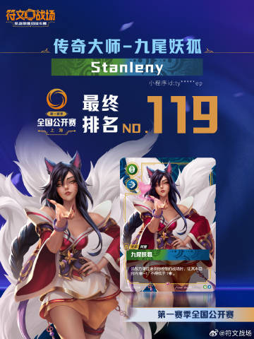 《符文战场:英雄联盟对战卡牌》第一赛季全国公开赛金属传奇卡获奖名单正式揭晓!