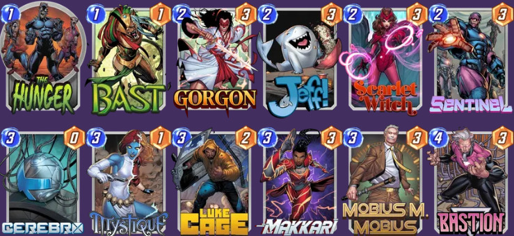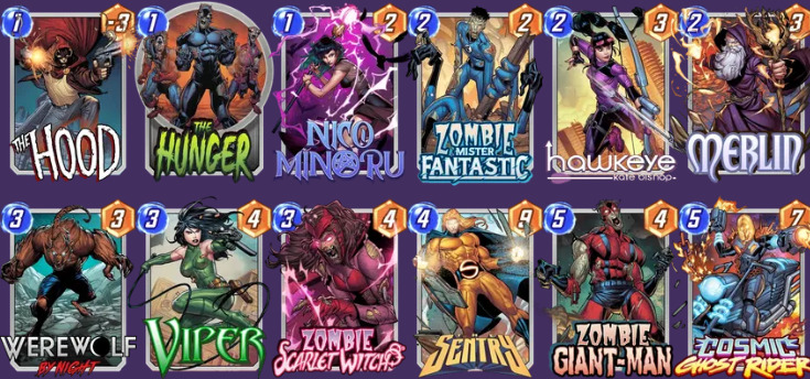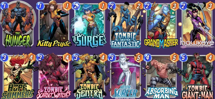 卡组核心:【凯蒂·普莱德】【霍普·萨默斯】【丧尸猩红女巫】【丧尸巨人侠】