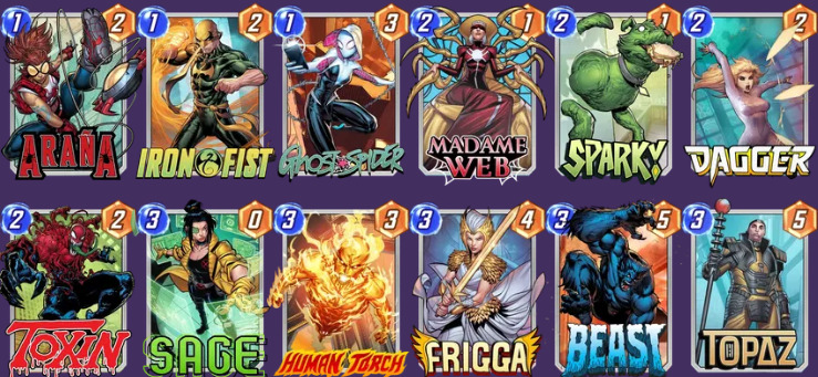 卡组核心:【蜘蛛女孩】【蜘蛛夫人】【史巴克】【海姆达尔】