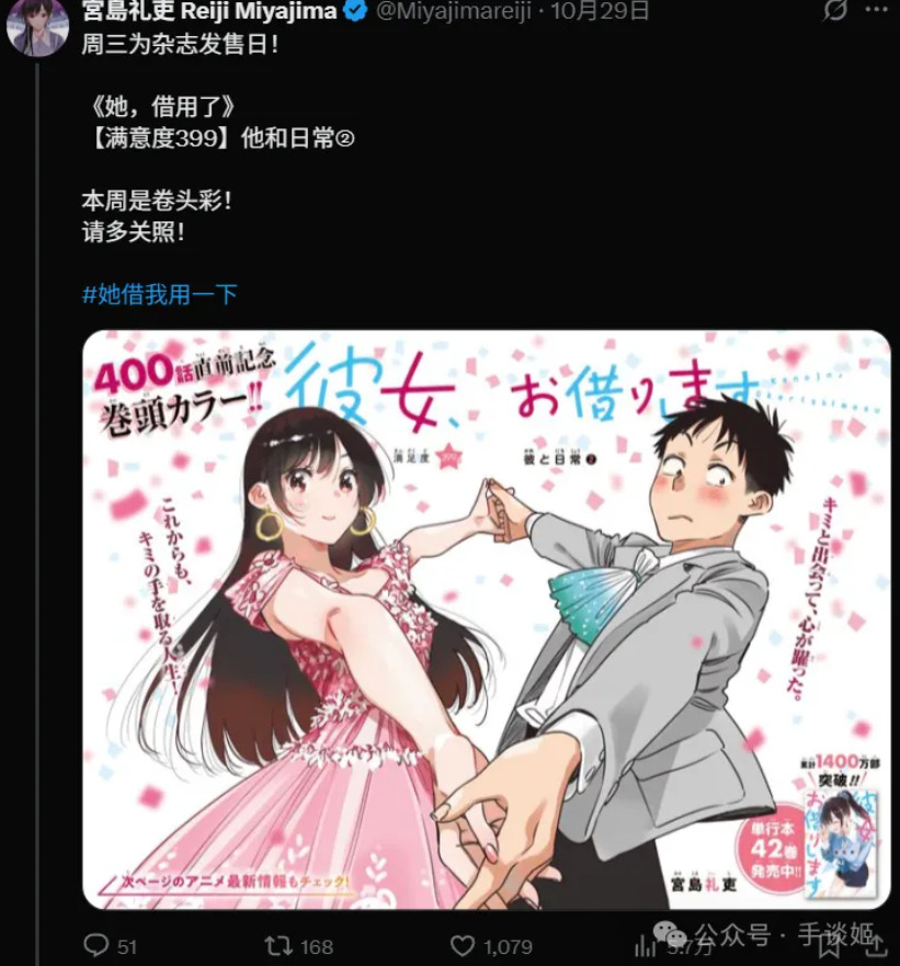 不知道姬友们这两天有没有看到这么一条新闻,说是《租借女友》漫画剧情里面男主角木之下和也换了个发型,大家看到之后纷纷表示“这不就是宫岛礼吏本人么!”结合宫岛礼吏已婚且有孩子的情况,于是有不少人提出了“原来这漫画是作者的恋爱自传?!”的说法。