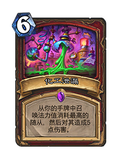 - 新:[10费] 免疫火焰法术。战吼:随机对敌人施放消耗总计15点法力值的火焰法术。