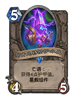 - 旧:嘲讽。亡语:获得4点护甲值。星舰组件。