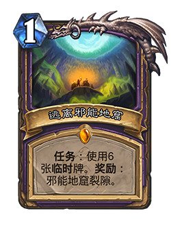 - 旧:任务:使用5张临时牌。奖励:邪能地窟裂隙。