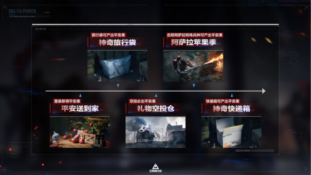 平安果可通过多个途径获取,除暖冬节登录活动外,各位干员可在烽火地带模式中搜索神奇旅行袋、礼物空投仓、神奇快递箱等容器,均将有概率获取平安果。