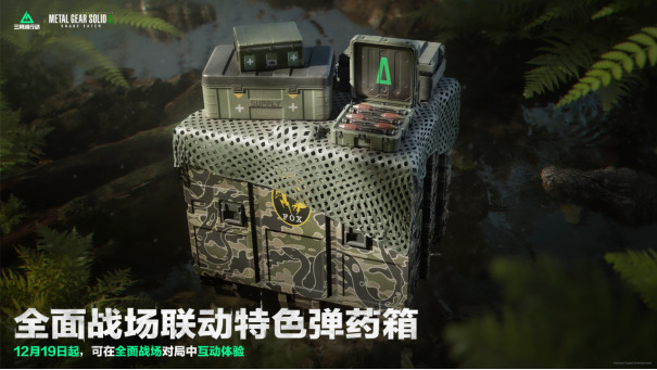 联动外观免费送活动也将于12月19日同步开启,完成联动活动可免费获取联动专属传说武器外观「SR-3M紧凑突击步枪-潜龙谍影」。同时,全面战场模式也将加入特色联动弹药箱,其融合了《潜龙谍影△:食蛇者》的经典元素,可在对局中互动体验。