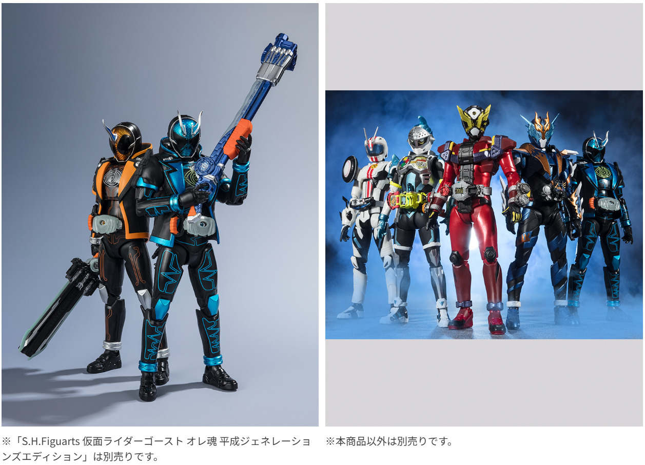 《假面骑士灵骑》中的「假面骑士魂骑」以附属武器配件套装的平成GENERATIONS EDITION版登场。仅在S.H.Figuarts才能体验到的可动范围。附属眼枪臂腕。