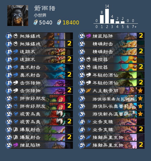 以这两点为核心,构筑本卡组,只带最低限度的随从,令观赏鸟类和抛接嬉戏能稳定检索关键随从,其他的卡只用于蹭血和补充伤害。