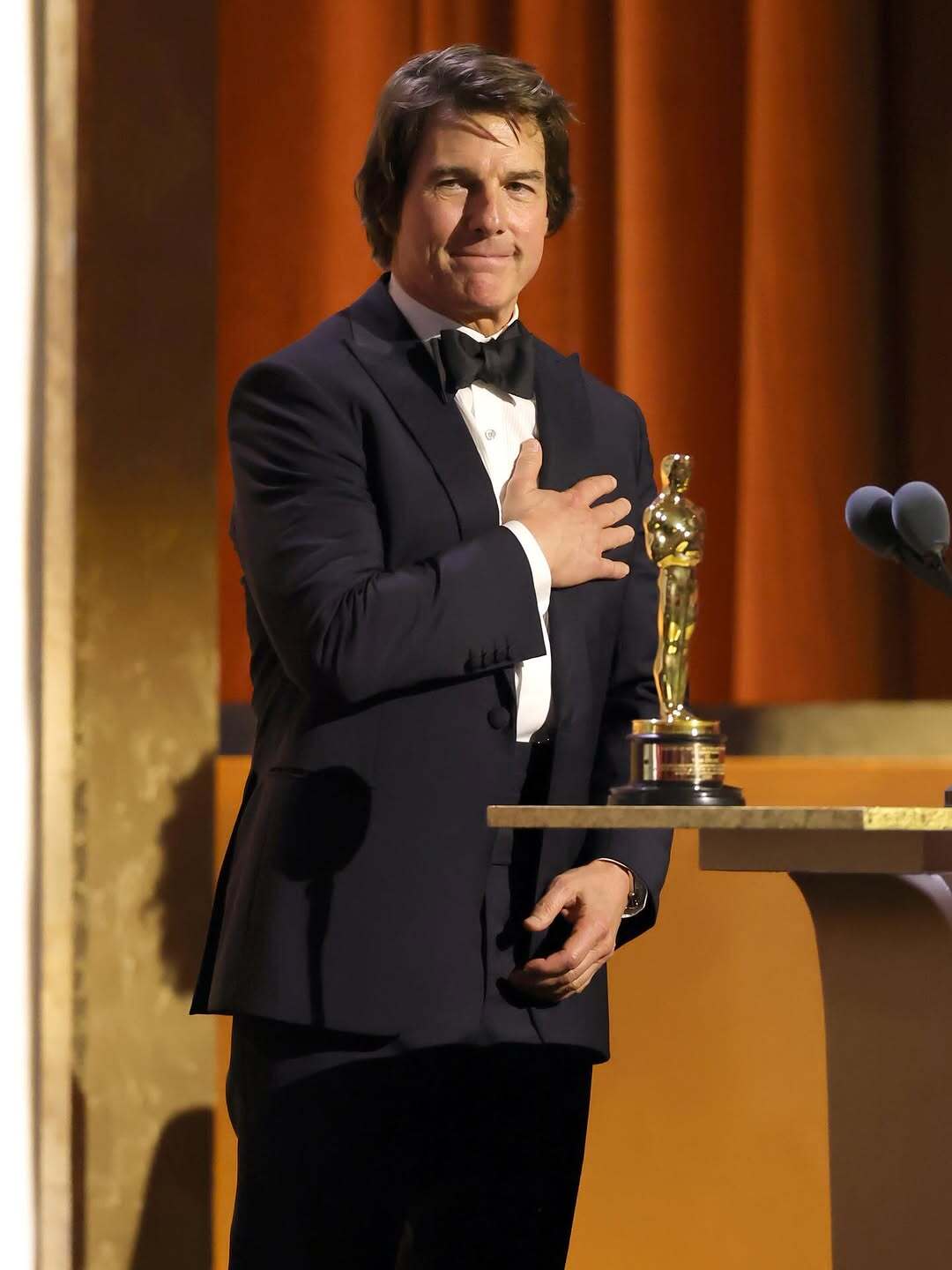 在其标志性系列电影《碟中谍》主题曲中,汤姆·克鲁斯走上了洛杉矶杜比剧院的舞台。一登台,就受到了现场电影界名人长达数分钟的起立鼓掌和热烈掌声,其中包括史蒂文·斯皮尔伯格、莱昂纳多·迪卡普里奥和杰瑞·布鲁克海默。