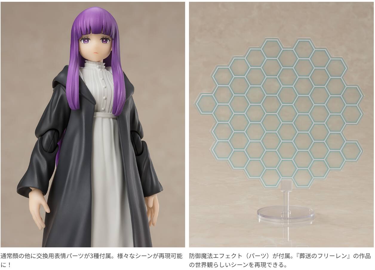 フリーレンの弟子として共に旅をすることになる魔法使い「フェルン」が、S.H.Figuartsに登場。豊富な交換用表情パーツ・手首パーツに加えて、防御魔法エフェクト(パーツ)も付属。一部軟質素材を使用することで印象的なポージングを取ることが可能。