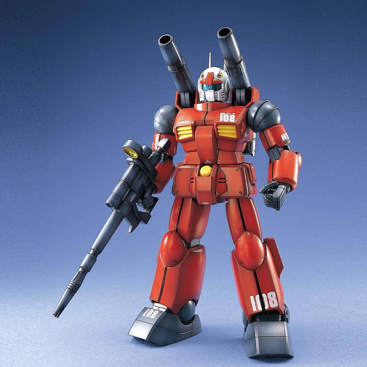 「機動戦士ガンダム」に登場するサポートMSである「ガンキャノン」がマスターグレードモデルで登場。精密なモールドと精巧な形状再現により、ガンキャノンの魅力を最大再現。コクピットブロックのコアファイターを再現し、脚部や頭部の内部メカも再現しています。武器には、ビームライフルのほかに、ミサイルポッド、手榴弾なども付属。
