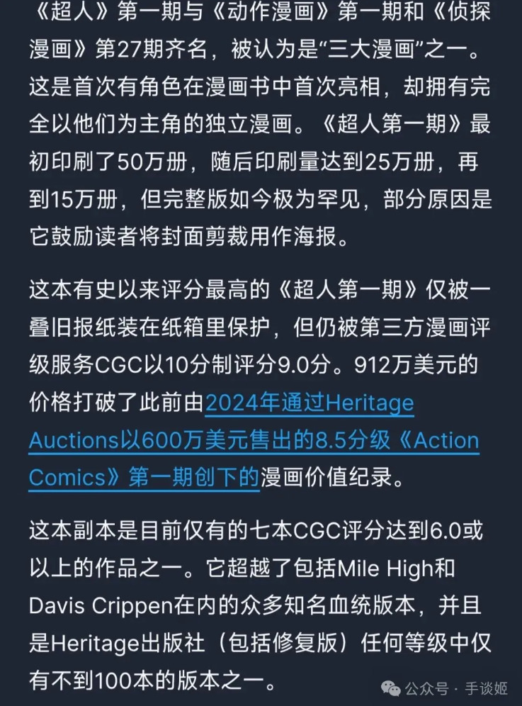 顺带一提,上一个最高记录保持者就是上面所说的《动作漫画》创刊号——一举卖出了600万美元,四舍五入后约合人民币4262万,也非常了不起了……