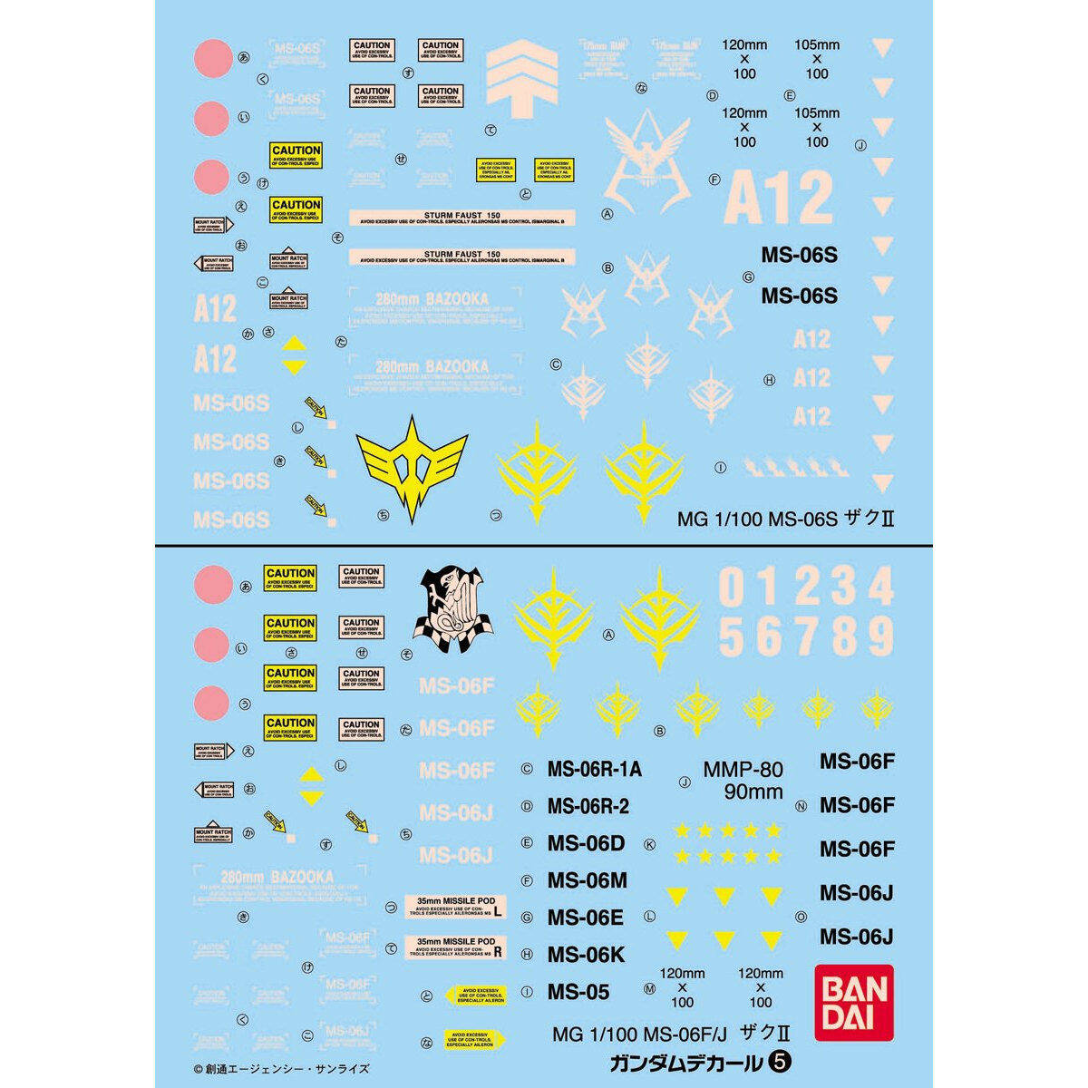 万代 MG 高达贴纸No.5MS-06S扎古II用/MS-06F/J 扎古II用