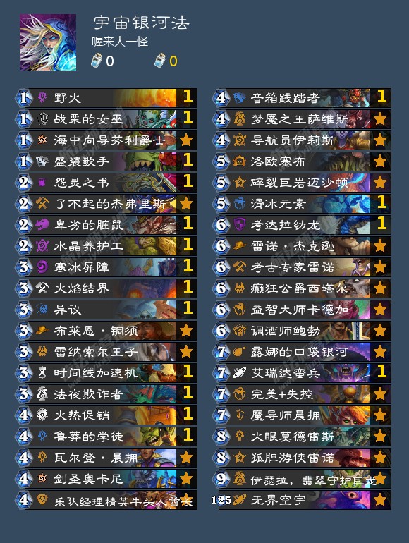 本月已上传说,当前的狂野环境下宇宙银河法的强度是非常不错的优开许多卡组(战绩如下)