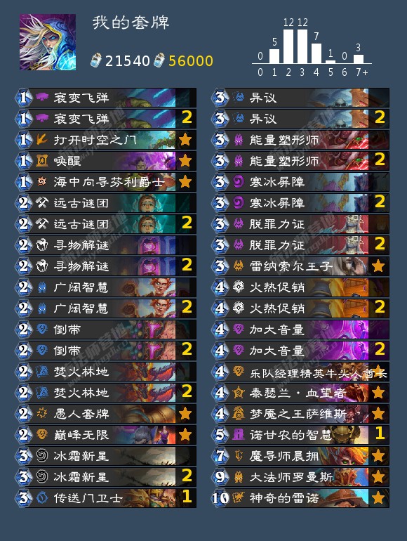 这套愚人法基于b站up主@爱吃莓汁的萝卜的构筑,我玩了一个月根据环境和手感调整,去掉了星术师托奇导演等偏娱乐的牌,加强了解场和随从检索能力,地沟油里强度尚可,上传后愉快划水中。