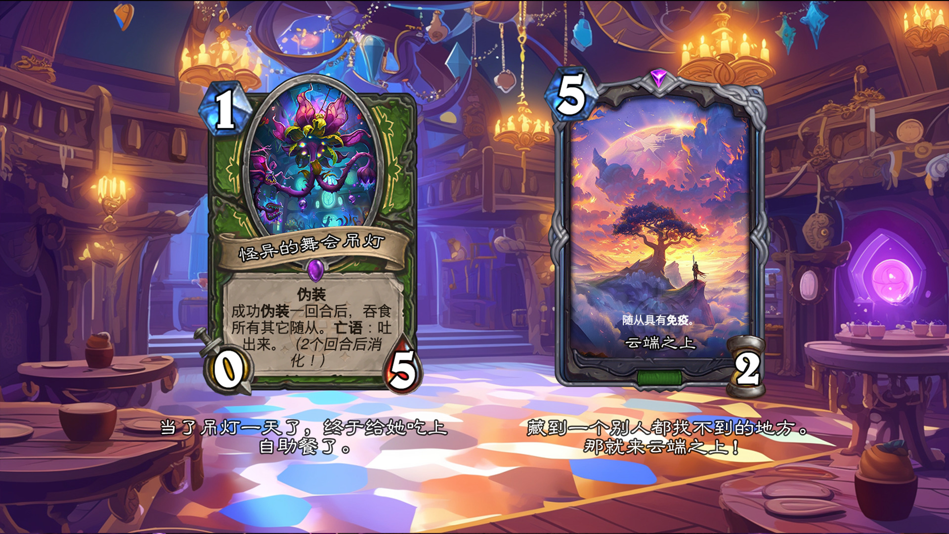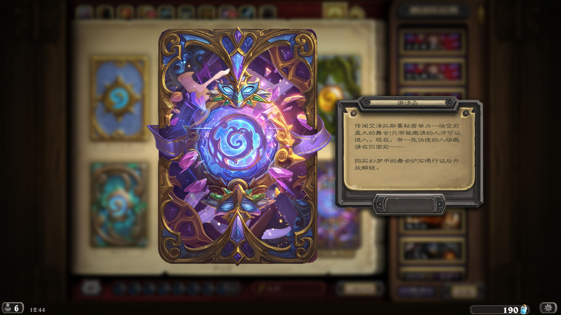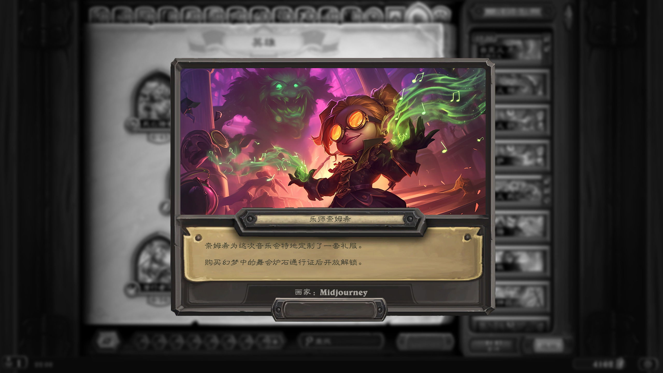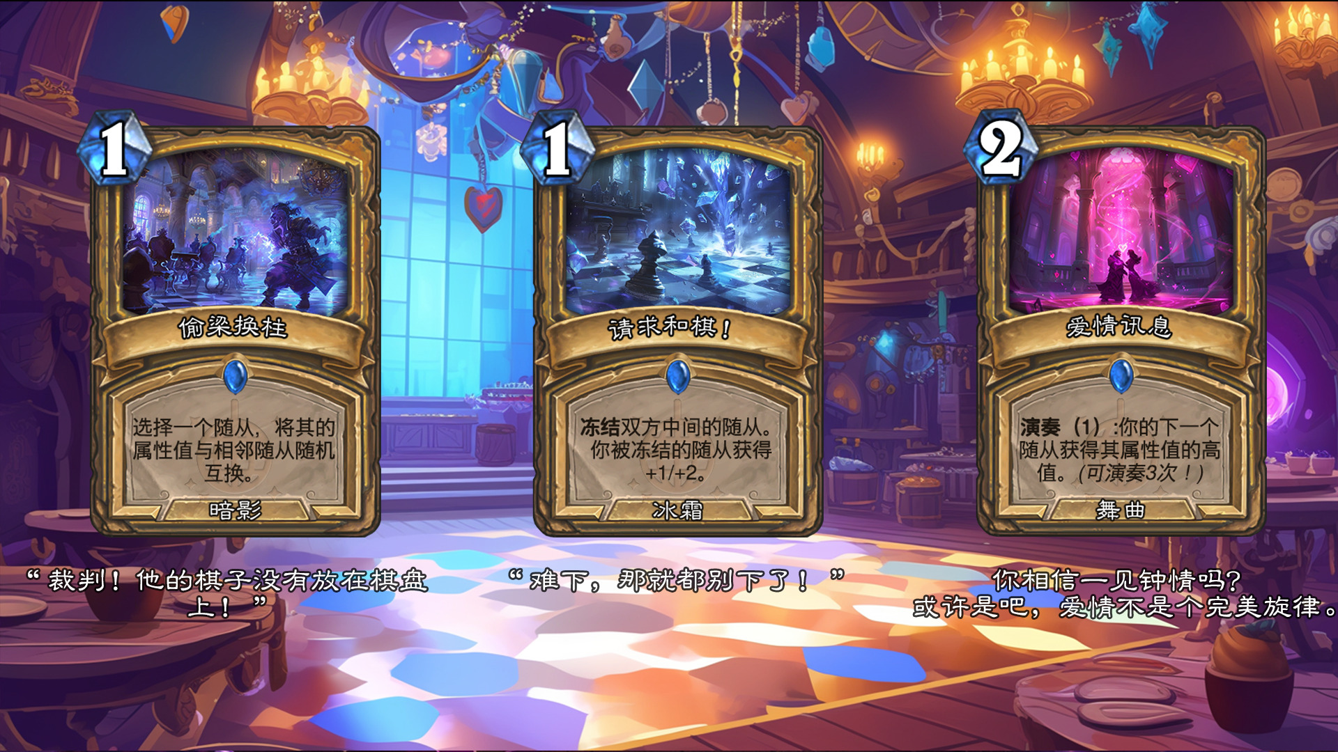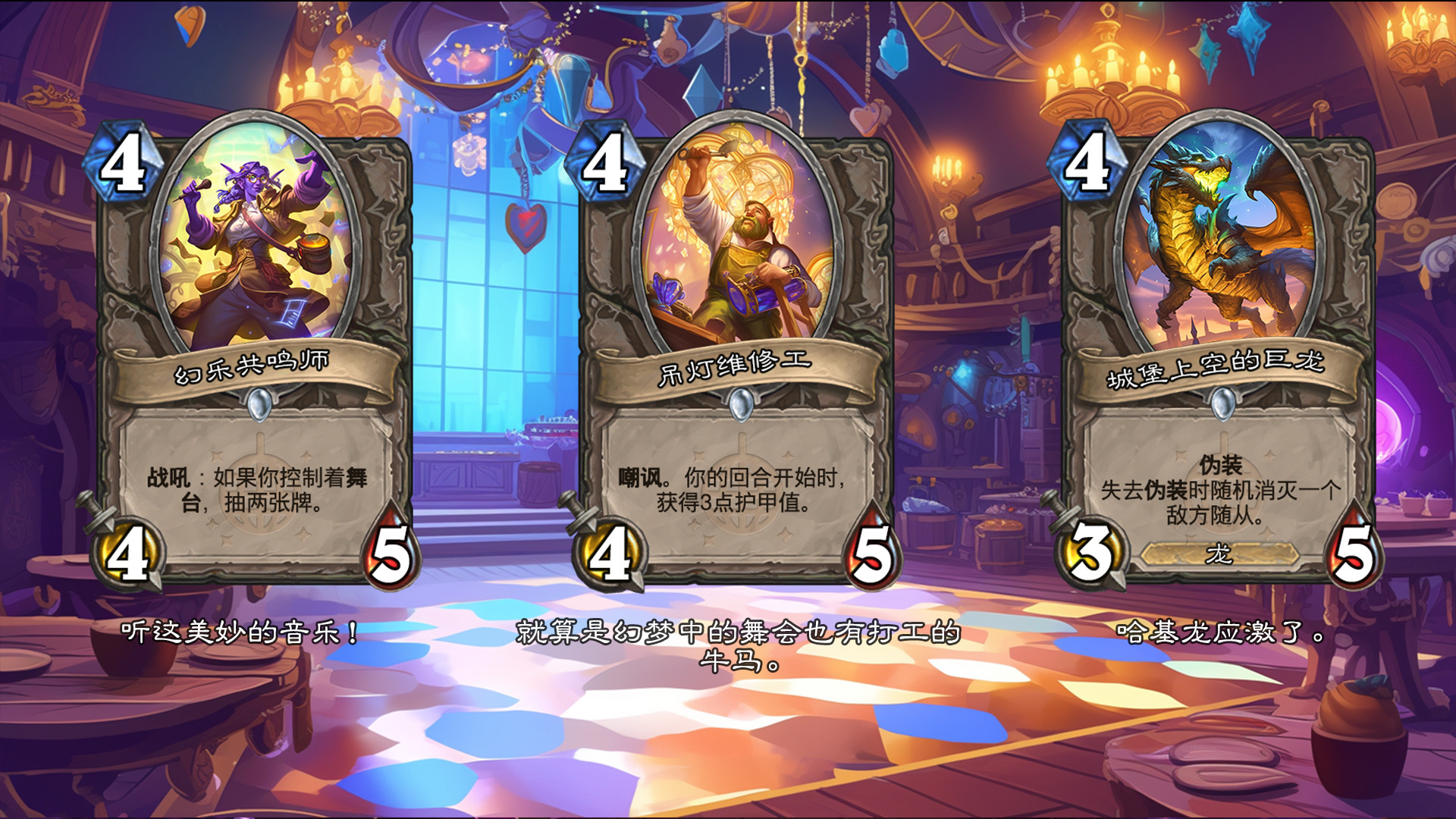 然后2019年的时候其实就尝试做过了,当时还是狗头人于地下世界拓展包,所以当时的背景设置就是狗头人不被邀请进入舞会,关键词为伪装hhh。舞台这个关键词其实有pvzh环境的思路。