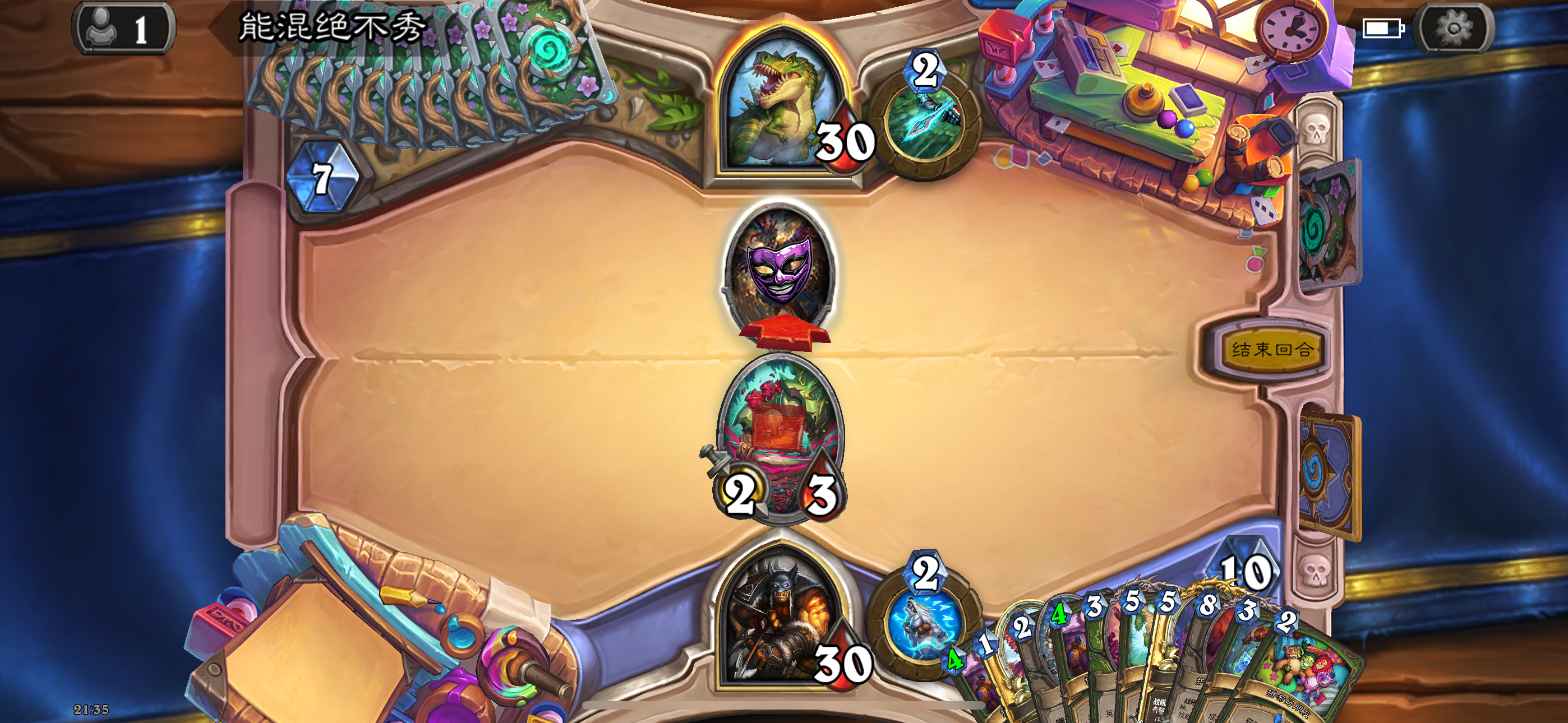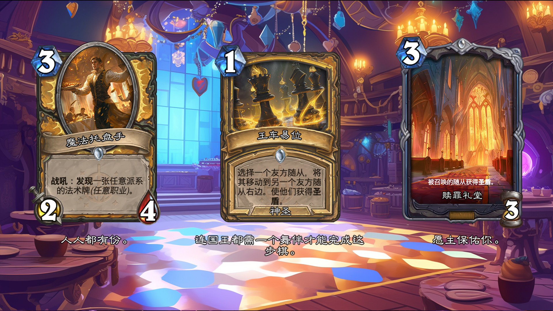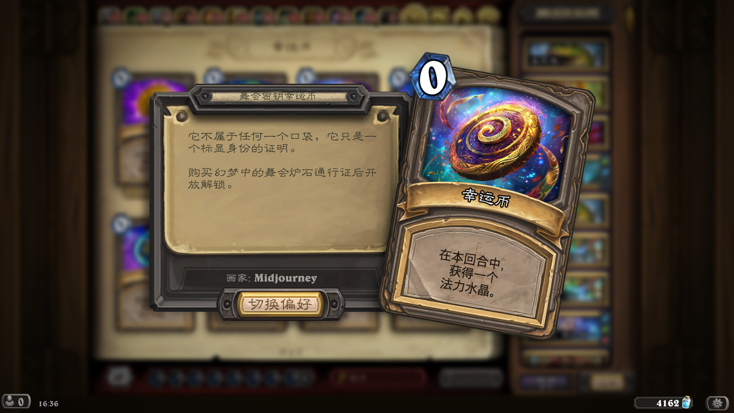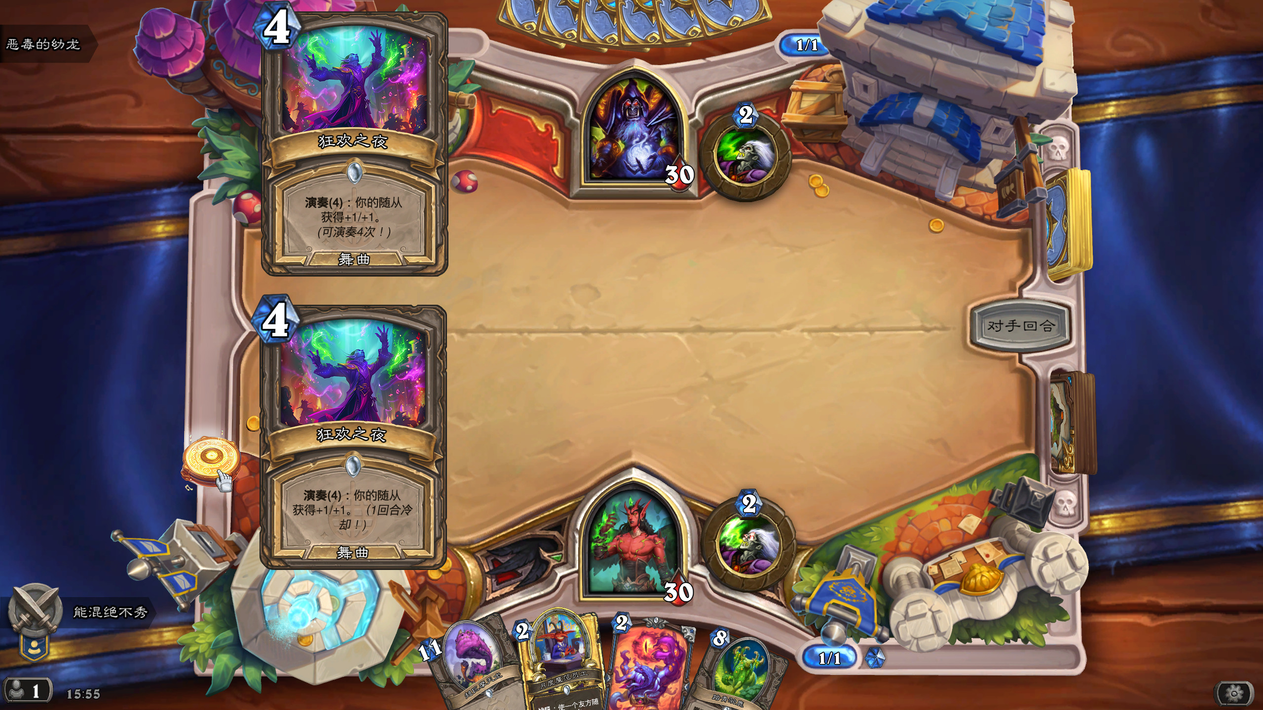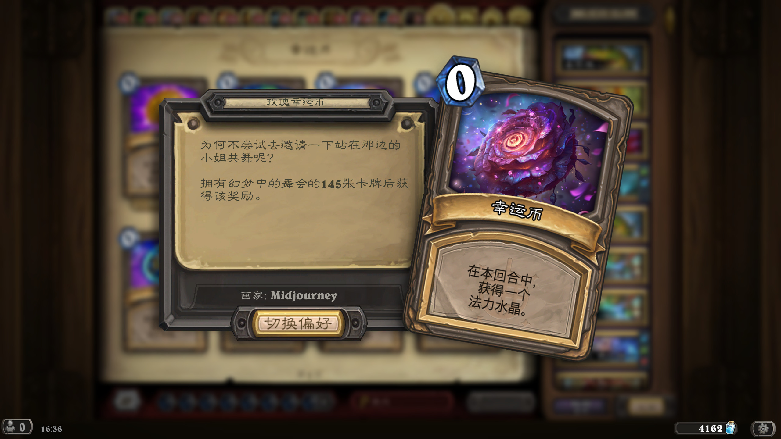 然后2019年的时候其实就尝试做过了,当时还是狗头人于地下世界拓展包,所以当时的背景设置就是狗头人不被邀请进入舞会,关键词为伪装hhh。舞台这个关键词其实有pvzh环境的思路。
