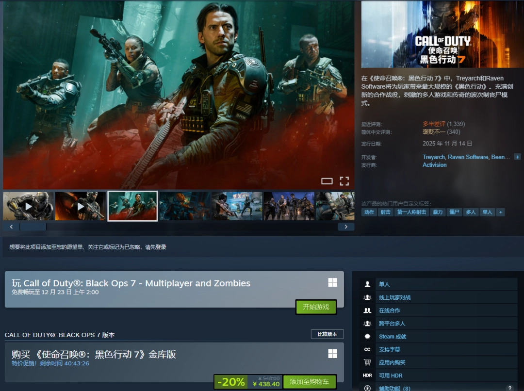 《使命召唤:黑色行动7》已登陆Steam、战网、PlayStation及Xbox平台。此次限时免费游玩与促销活动,为仍在观望的玩家提供了体验这款年度FPS作品的机会,千万不要错过了!
