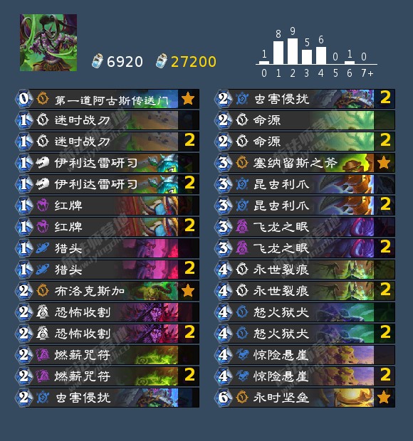 如果卡组有乐队经理精英牛头人酋长 或 奇利亚斯豪华版3000型 ,则详细卡图底下会显示相应的卡。