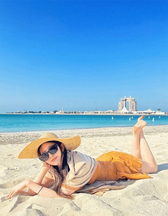 刘亦菲晒出阿联酋素颜美照 穿白色背心大秀美腿