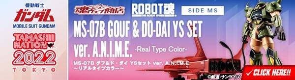 - 商品说明为纪念TAMASHIINATION2022举行,特此推出“MS-07BGoufver.A.N.I. M.E” (2016年7月发售)和“<SIDEMS>德戴YS&Gouf拓展套装ver.A. N.I. M.E."”(2016年12月发售)的豪华实型特别配色(RealTypeColor)版合辑商品!