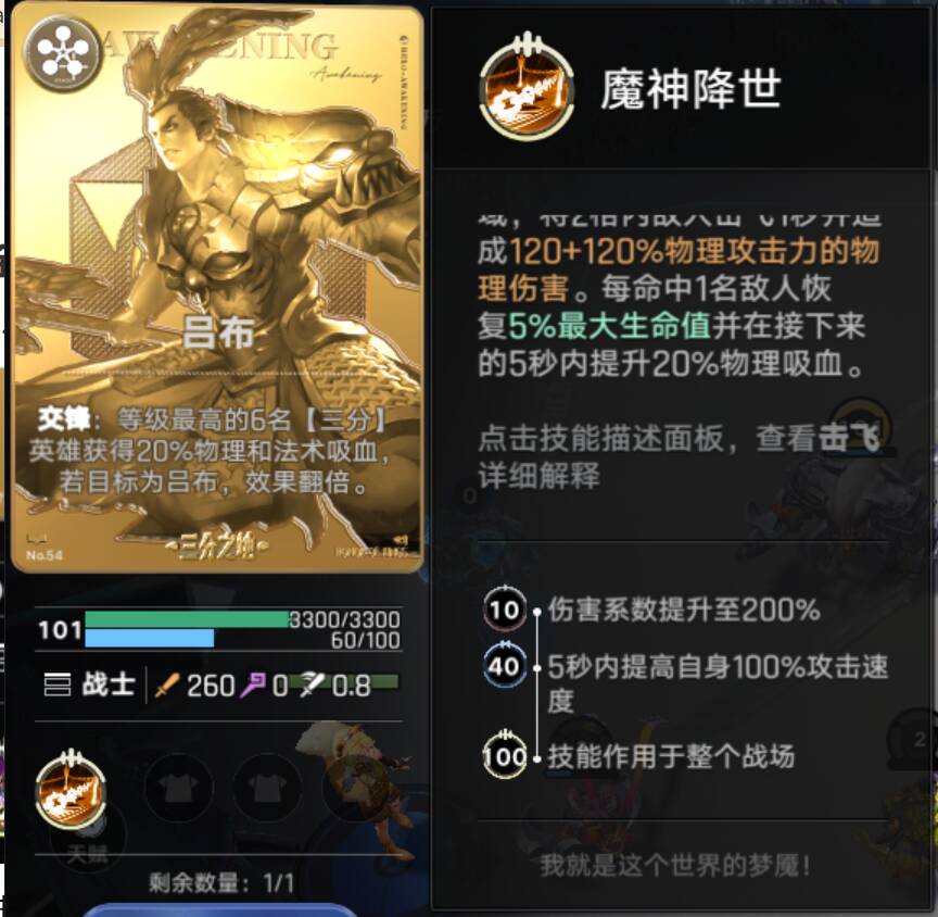 这是一张最高本,5本的棋子——吕布。