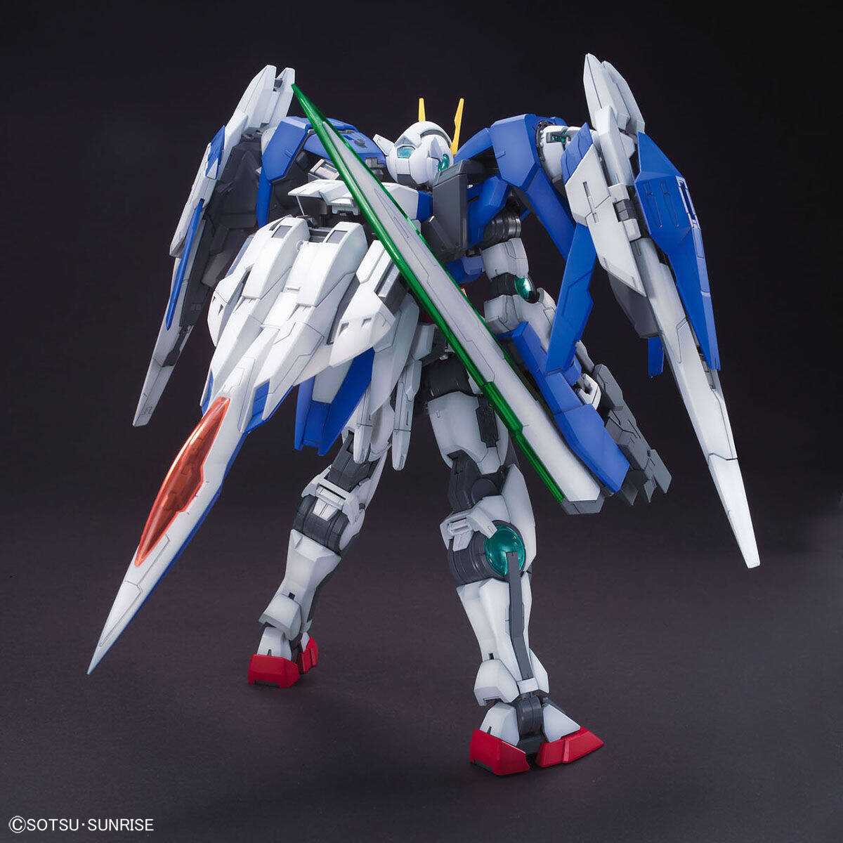 ■ GN 盾牌、GN 劍 II 和 GN 光束軍刀等附屬武器已全新設計。 還包括一個顆粒儲罐。 板件 ×23,铝箔贴纸 ×1,涤纶贴纸 ×1,高达贴纸×1,LED 单元(绿色)×1,拼装说明书