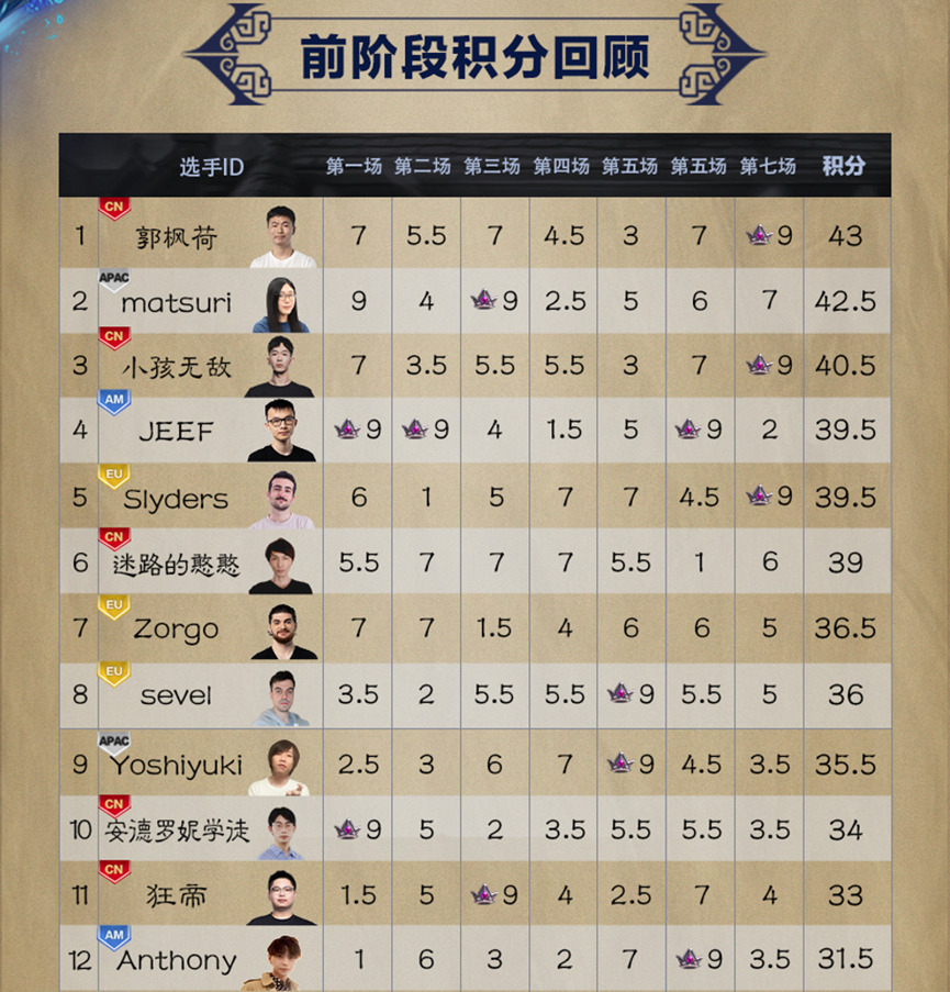 甲组(1月9日18:00)汇集了总积分前8的顶尖棋手