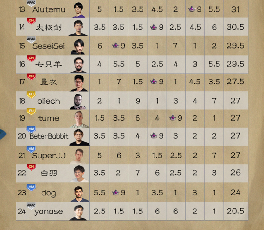 有墨衣、oliech、tume、BeterBabbit、SuperJJ、白羽、dog、yanase等选手
