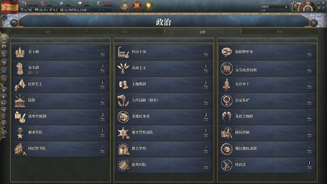 平定内乱后,“国家重建”任务链则深度绑定于新的政治操作系统。每一项关键**——无论是土地**、殖民地自治还是尝试重现西班牙的荣光,都非简单通过法案,而必须通过一系列与军队、教会、工业家等利益集团的秘密交易与临时妥协来实现。整个过程如同一场贯穿数十年的精密政治操盘,生动诠释了在帝国废墟上重建现代国家所必须面对的灰色地带与沉重代价。
