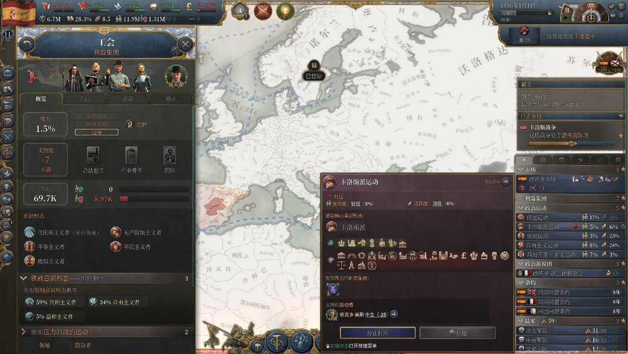 然而,本DLC的挑战在于,这些复杂的新机制与高度具体的历史剧本(尤其是西班牙的卡洛斯战争、殖民地独立运动)深度绑定。一旦脱离伊比利亚语境,或度过核心的历史危机时期,新系统的存在感与影响力便迅速淡化,而其带来的操作复杂度却仍然存在。葡萄牙的体验因缺乏同等密度的预设剧情而略显单薄,而游戏后期也容易回归到相对抽象的国家发展循环中。DLC成功地在伊比利亚的舞台上搭建了一座精致的沙堡,但实验的仪器和剧目,并未完全迁移至更广阔的“维多利亚”宇宙。