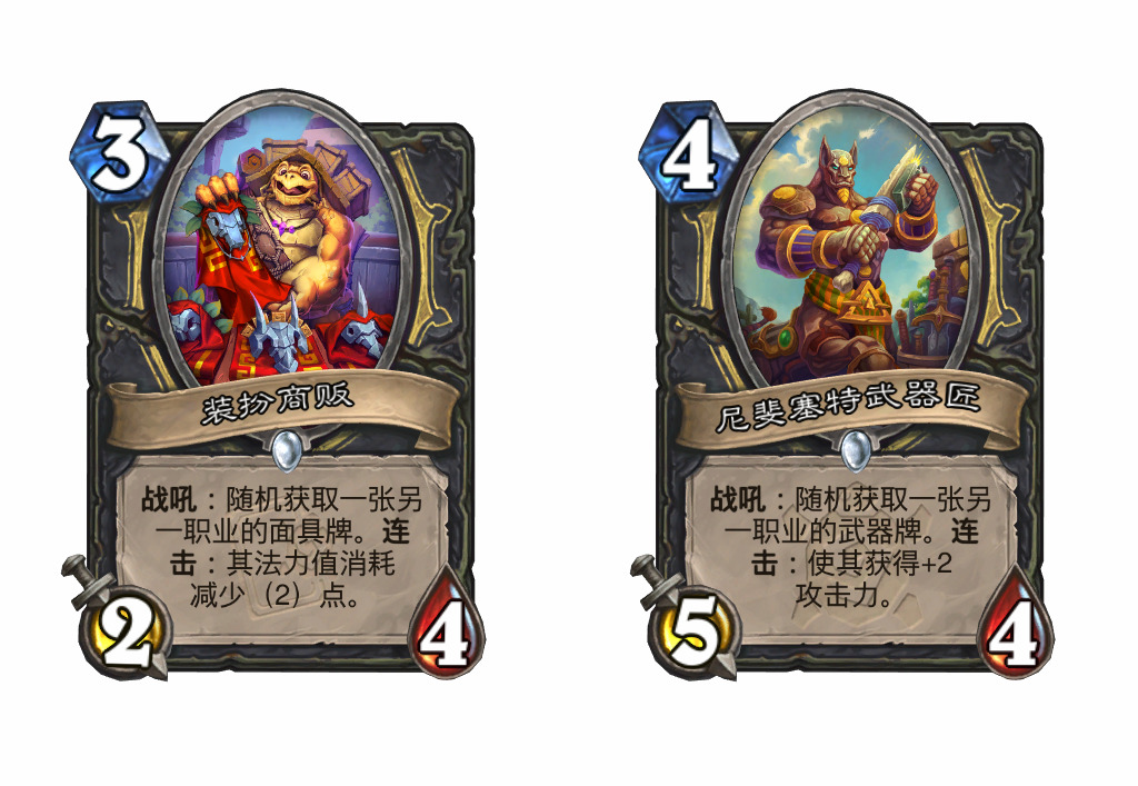 另外ClayByte上周还对连击效果的独立性问题作了详细解释,这个问题主要指的就是幸运彗星,它无法使装扮商贩、尼斐塞特武器匠这样的牌的连击效果触发两次。原因是连击效果分两类,一类是“独立句子”(如潜踪大师奥普的“施放刀扇”),可以被施放两次;另一类是单拎出来信息不完整的(如上面两张牌的“其法力值消耗减少(2)点”“使其获得+2攻击力”,“其”没有明确指代),而且本质上可以视为“改为”,不能被施放两次,不是bug。所以尼斐塞特武器匠的连击效果本质上是“改为获取一张+2攻武器”,而非为获取的武器+2攻——所以ClayByte也承认这张牌的描述是有问题的……