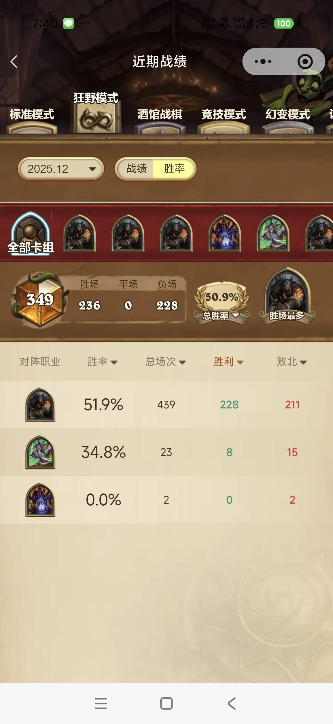 话不多说,先贴卡组和战绩