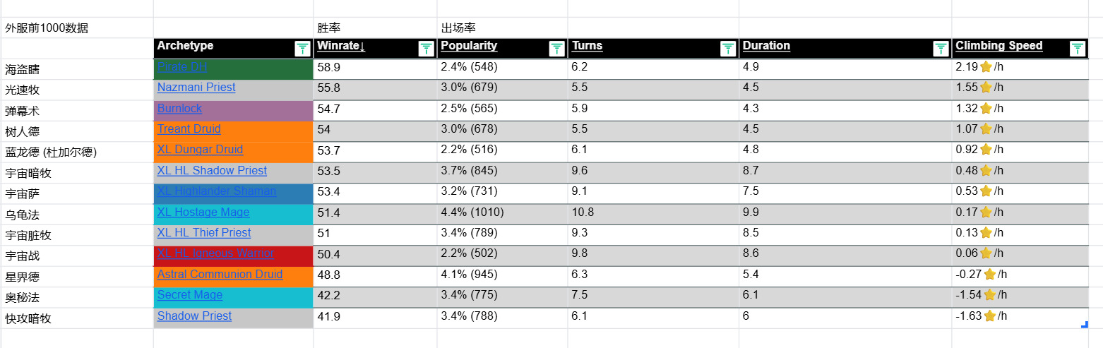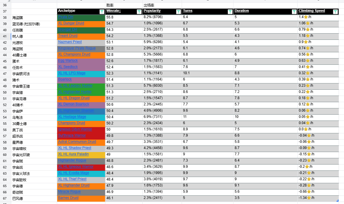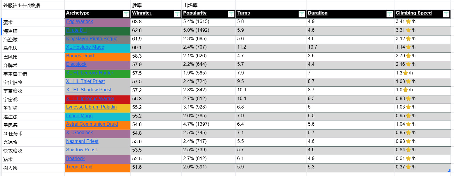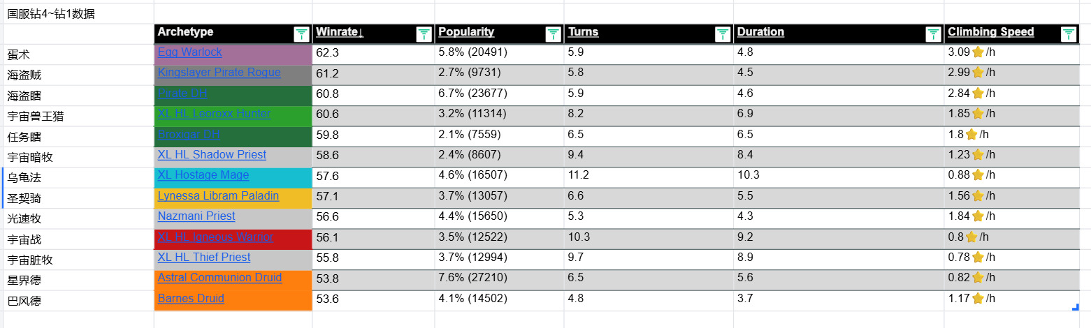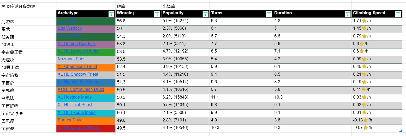 [链接] 驴子网各分段 卡组数据 (微信小程序HS卡牌大师)