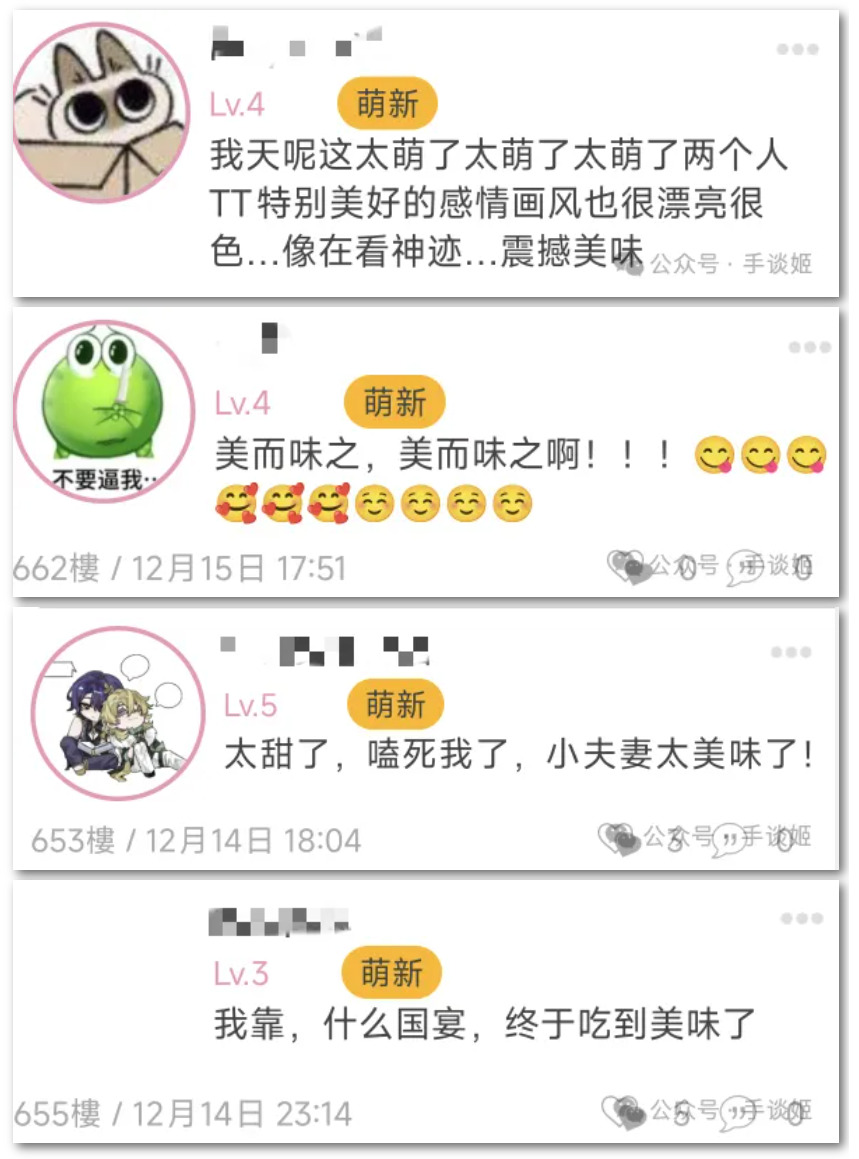 由于画功出色且剧情好吃,让她积攒了不少粉丝,其中女性粉丝不占少数,很多粉丝称她的菜为国宴。