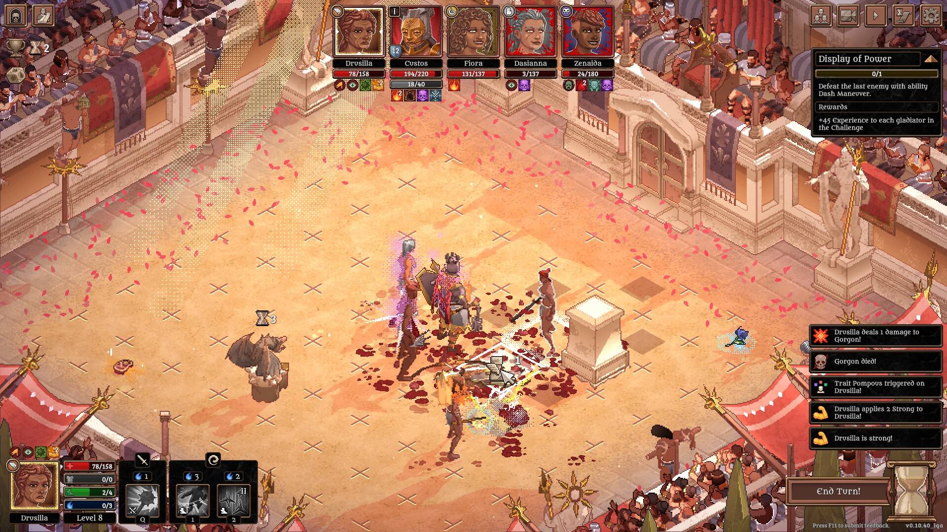 招募、训练并强化角斗士,打造多样化职业组合,同时权衡创伤、状态效果与荣誉风险。