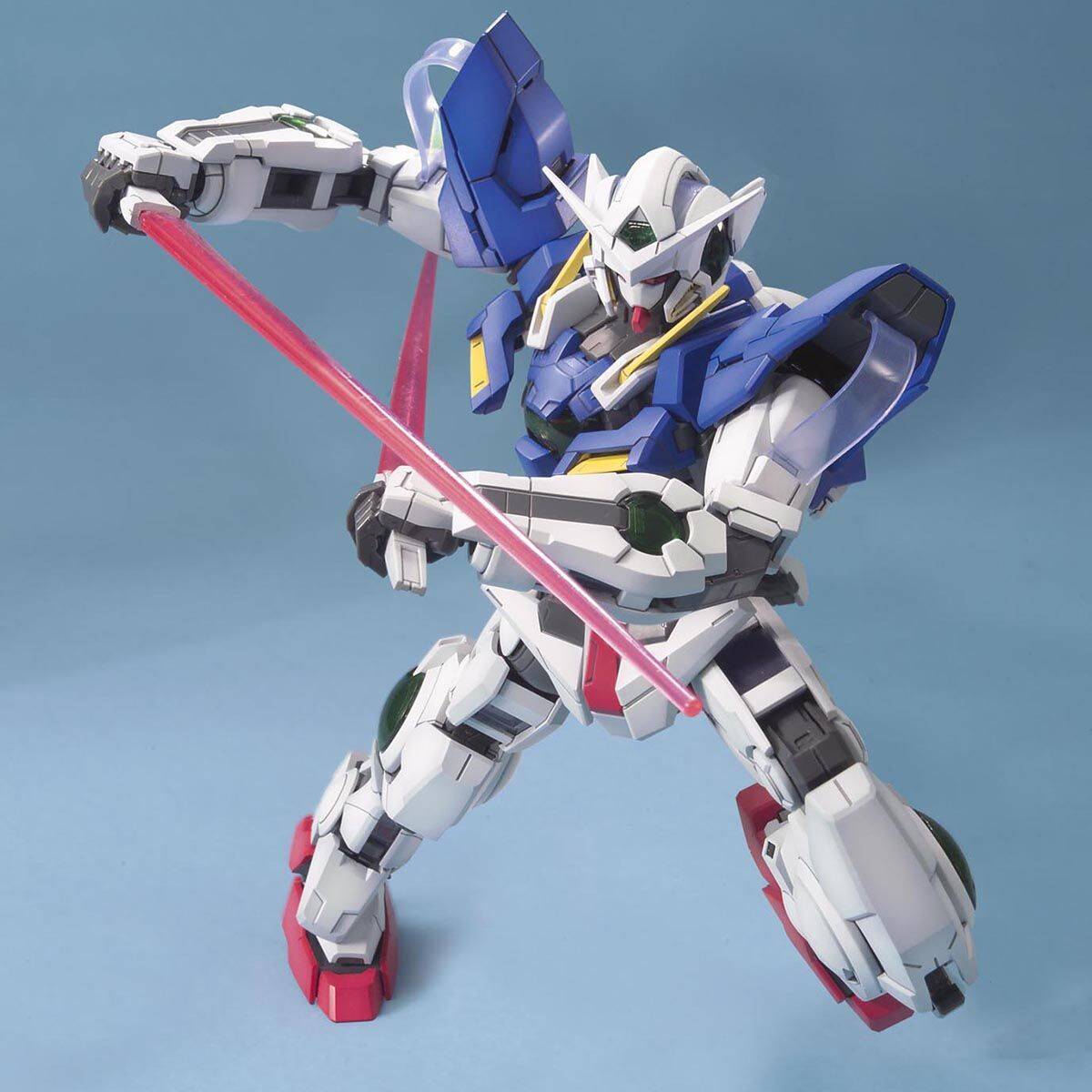 ガンダムエクシア、「機動戦士ガンダム00(ダブルオー)」よりMGシリーズに介入を開始する! GNドライブは脱着可能。GNドライブをディスプレイするための専用台座と背面保護用カバーが付属 胸・腕・脚のレンズ部はクリアパーツを二重化、更に内部マーキングはシールにより細かな文字まで細密に再現 ヒザや肘の動きに内部メカが連動するギミックを搭載 機体各部のコードには半透明樹脂素材を採用、フォログラムコードシートにより更に完成度がアップ セブンソード(GNソード、GNロングブレイド、GNショートブレイド、GNビームサーベル×2、GNビームダガー×2)に加え、スライドギミックを搭載したGNシールドが付属 MGエクシアオリジナルのスペシャルマーキングシール、ガンダムデカールが付属