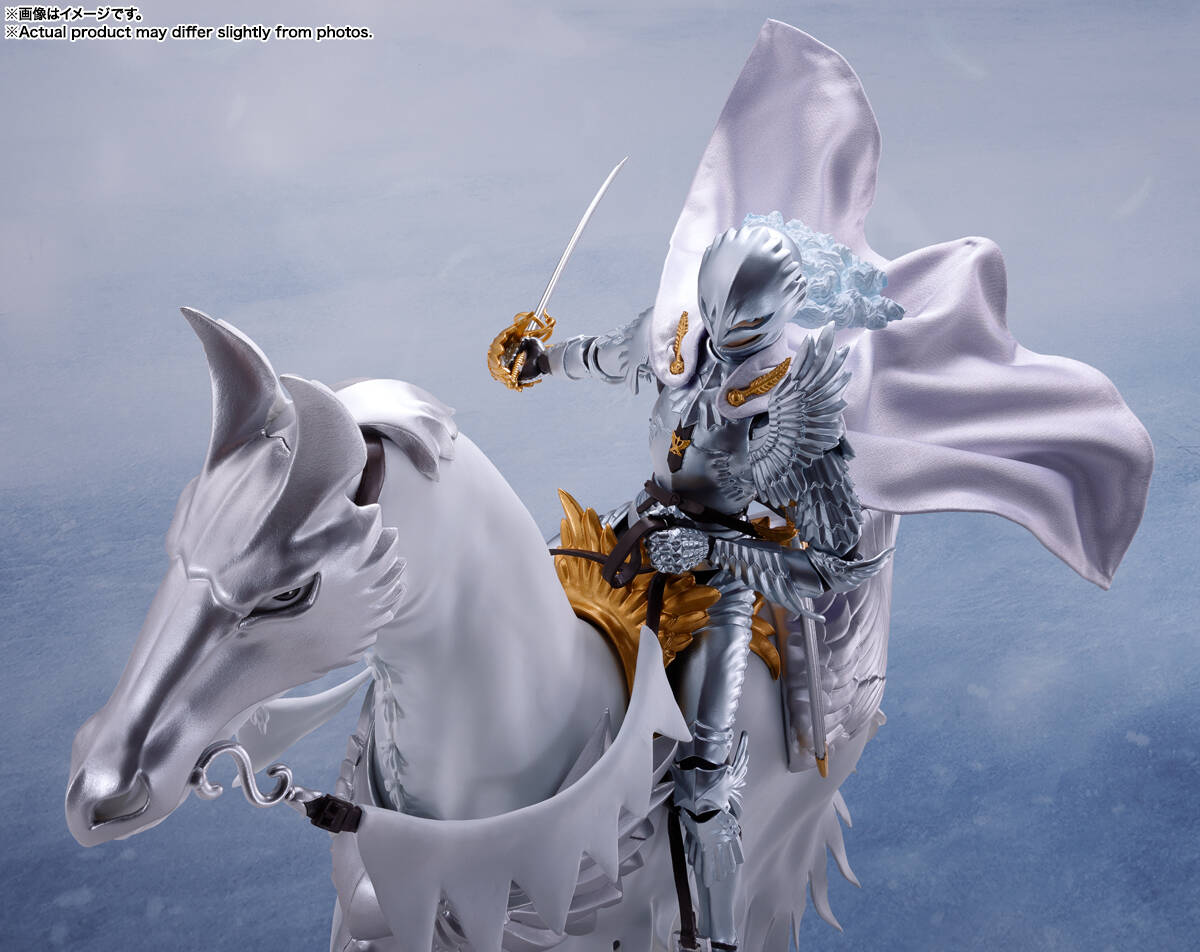 全世界で人気を誇るダークファンタジーの金字塔、『ベルセルク』が遂にS.H.Figuartsに降臨。第二弾は「絶対者」として現世に受肉した「新生・鷹の団」団長、グリフィス(光の鷹)が馬とセットの大ボリュームで登場。