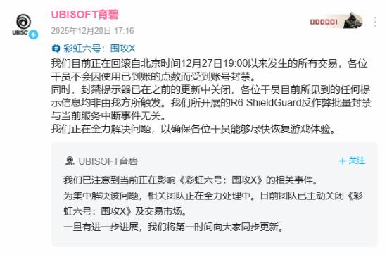 我们目前正在回滚自北京时间12月27日19:00以来发生的所有交易,各位干员不会因使用已到账的点数而受到账号封禁。